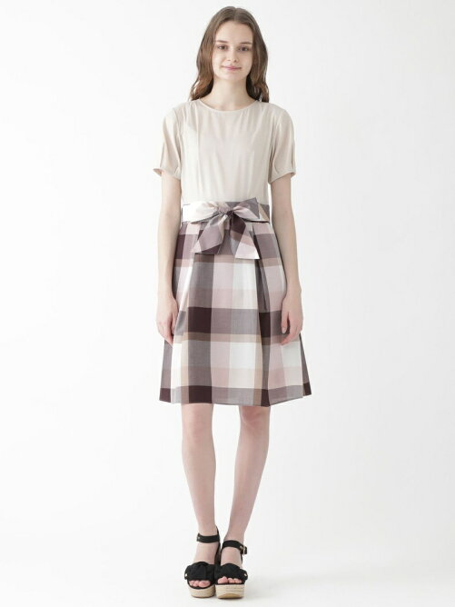 ブルーレーベルクレストブリッジ Blue Label Crestbridge ワンピース 半袖 ひざ丈 フェイクレイヤード チェック ウール 36 黒 赤 ベージュ Kh レディース 081 ベクトルパーク