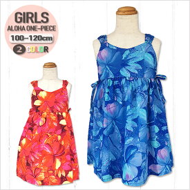 子供服ハワイアン キッズワンピース プルメリア ハイビスカス柄 5歳 6歳