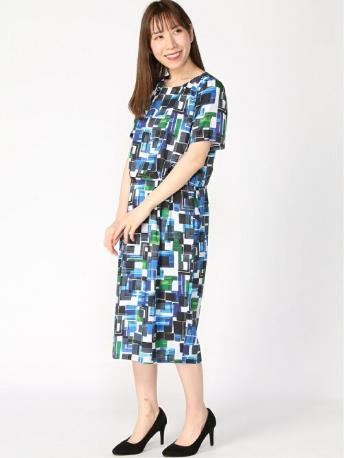 幾何学模様ワンピース 商品コード341-380-59-5357 全体に幾何学模様があしらわれたデザインのワンピースです。 ウエストできゅっと引き締まり、スカート部分も広がり過ぎないので 女性らしい上品なラインになります。.