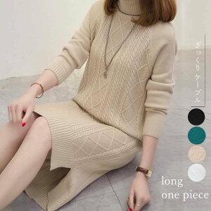 楽天市場 残り僅かセール ニットワンピース レディース タートルネック ケーブル編みタートルニットワンピース E2292 入荷済 レディース ハイネック ロング丈 秋冬 冬 大人 カジュアル 白 黒 可愛い 神戸レタス Kobe Lettuce