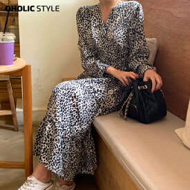 レオパードフリルポイントロングワンピース レディース ワンピース ロングワンピース 長袖 アニマル柄 フレアヘム マキシ丈 フェミニン 大人女性 秋 コーデ ドッキング フレアスカート ロング丈 レオパード トレンド カジュアル 大人可愛い 1223 Sayurio レディース